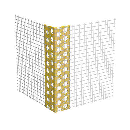 Das Produkt ist ein Kunststoffprofil mit integriertem Glasfasergewebe, in gelbem Farbton erhältlich. Es wird in verschiedenen Formaten angeboten, m...
