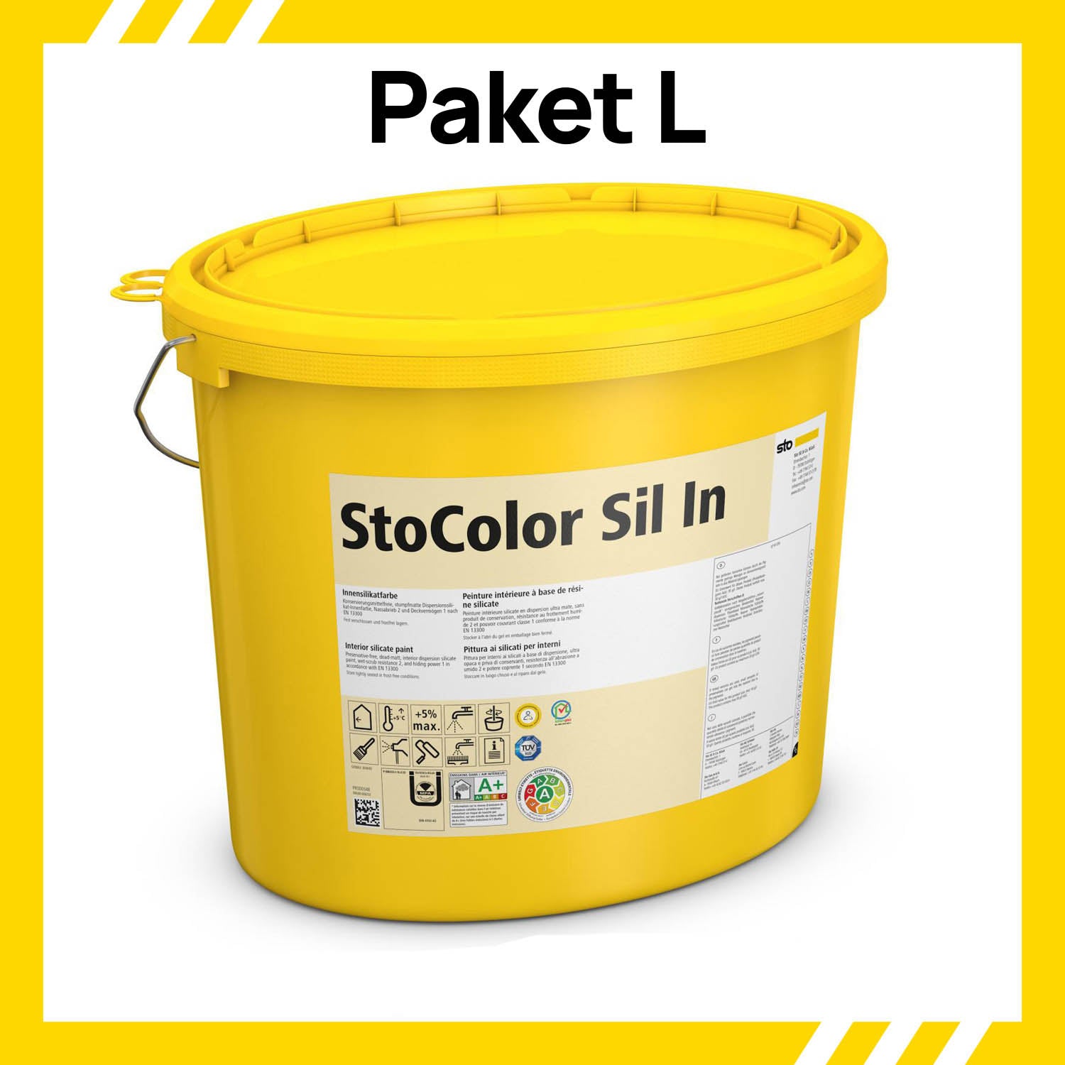 Jetzt sparen mit unserem Paket L bestehend aus 15 x 15 l StoColor Sil In in Weiß für 1.725 m²